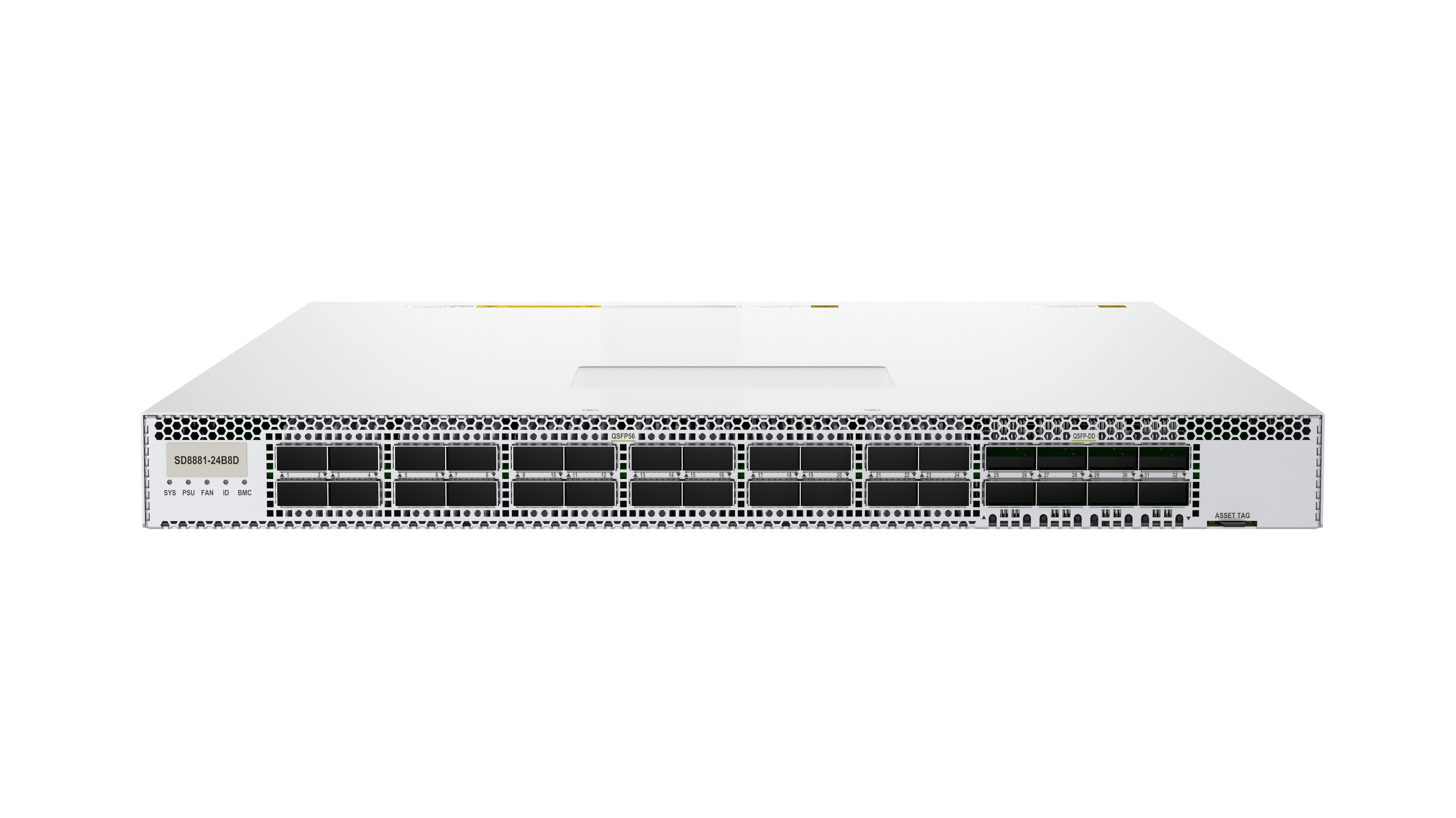 High densityProvides high-density 200G/400G ports, 24 200G QSFP56 downlink ports and 8 400G QSFP-DD uplink ports within 1U height, all ports can be wired.